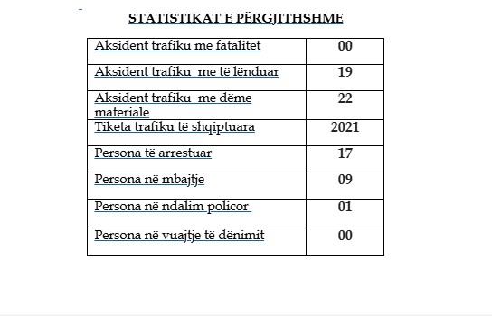 Ndërkaq, për shkelësit e rregullave në komunikacion, policia ka shqiptuar gjithsej 2021 gjoba trafiku.