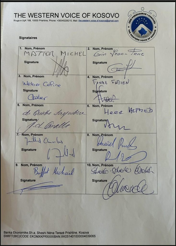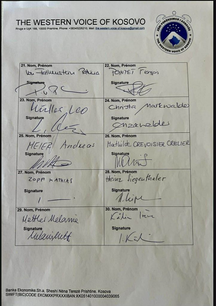 Më poshtë vijon Rezoluta me 30 deputetë zviceranë të nënshkruar: