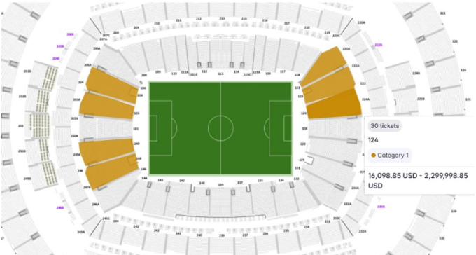 Disa bileta të tjera në të njëjtin sektor, prapa njërës prej portave, janë gjithashtu në shitje me çmimin relativisht “të lirë” prej 16,098 dollarësh (11,953 paund).
