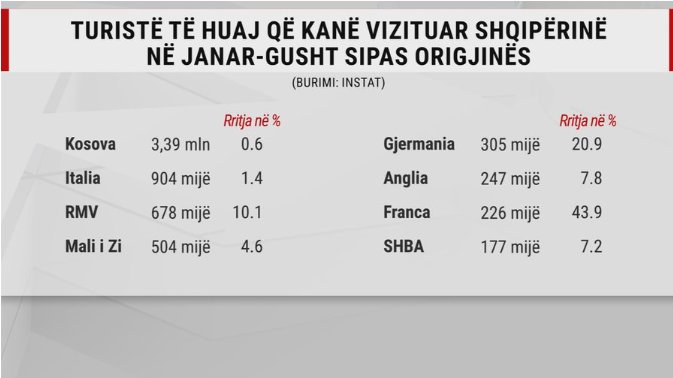 “Kjo është “rënia” e komentuar gabimisht, ashtu sikundër edhe një e dhënë tjetër që dua ta theksoj që nuk është e vërtetë që numri i vizitorëve nga Kosova ka rënë. Përkundrazi, ka një rritje e cila nuk është një rritje e madhe, për shkak se ka pak ose aspak shqiptarë në Kosovë që nuk kanë qenë më parë në Shqipëri, ashtu sikundër ka rritje edhe Italia, Mali i Zi, Maqedonia e Veriut dhe padyshim edhe Greqia”, tha kryeministri, raporton A2 CNN.