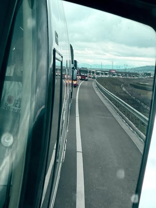 Kryetari i Ferizajt, Agim Aliu ka postuar fotografi të autobusëve që janë nisur drejt Prishtinës për marshin në mbrojtje të çlirimtarëve në Hagë.