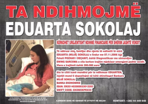 Apel për ndihmë, Eduarta Sokolaj nga Deçani ka nevojë për trajtim jashtë vendit