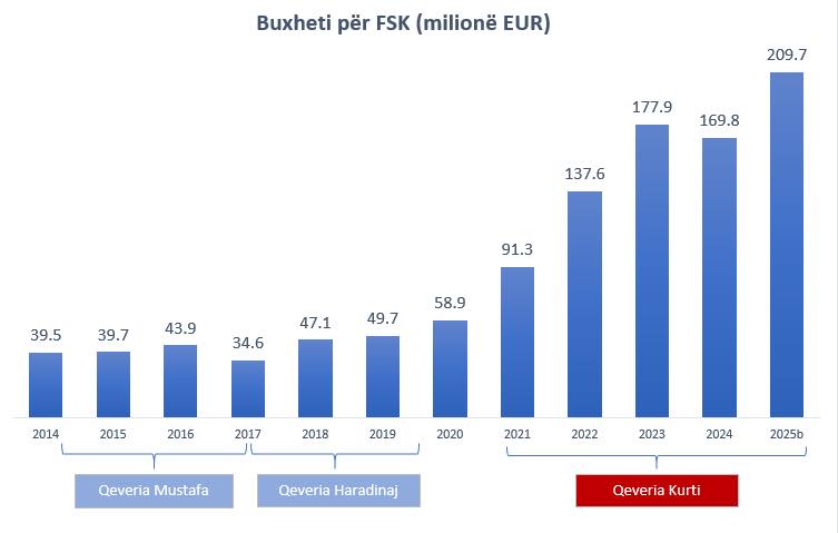 Në publikimin e tij, ministri ka paraqitur edhe një grafik krahasues që pasqyron trendin e buxheteve të ndara për ushtrinë ndër vite.