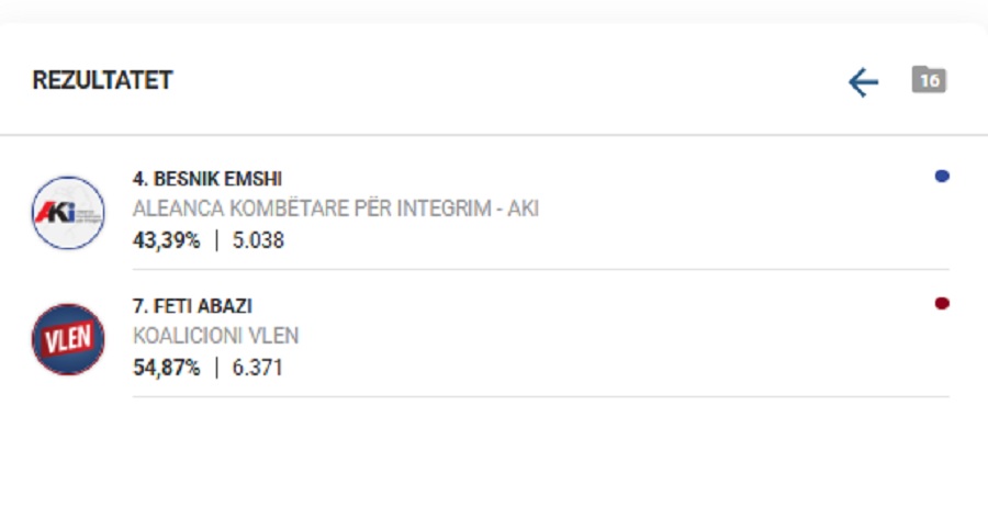Ai ka marrë 6 mijë e 371 vota ose 54.87 për qind, ndaj kandidatit tjetër shqiptar Besnik Emshi nga Aleanca Kombëtare për Integrim AKI me 5 mijë e 38 vota ose 43.39 për qind.