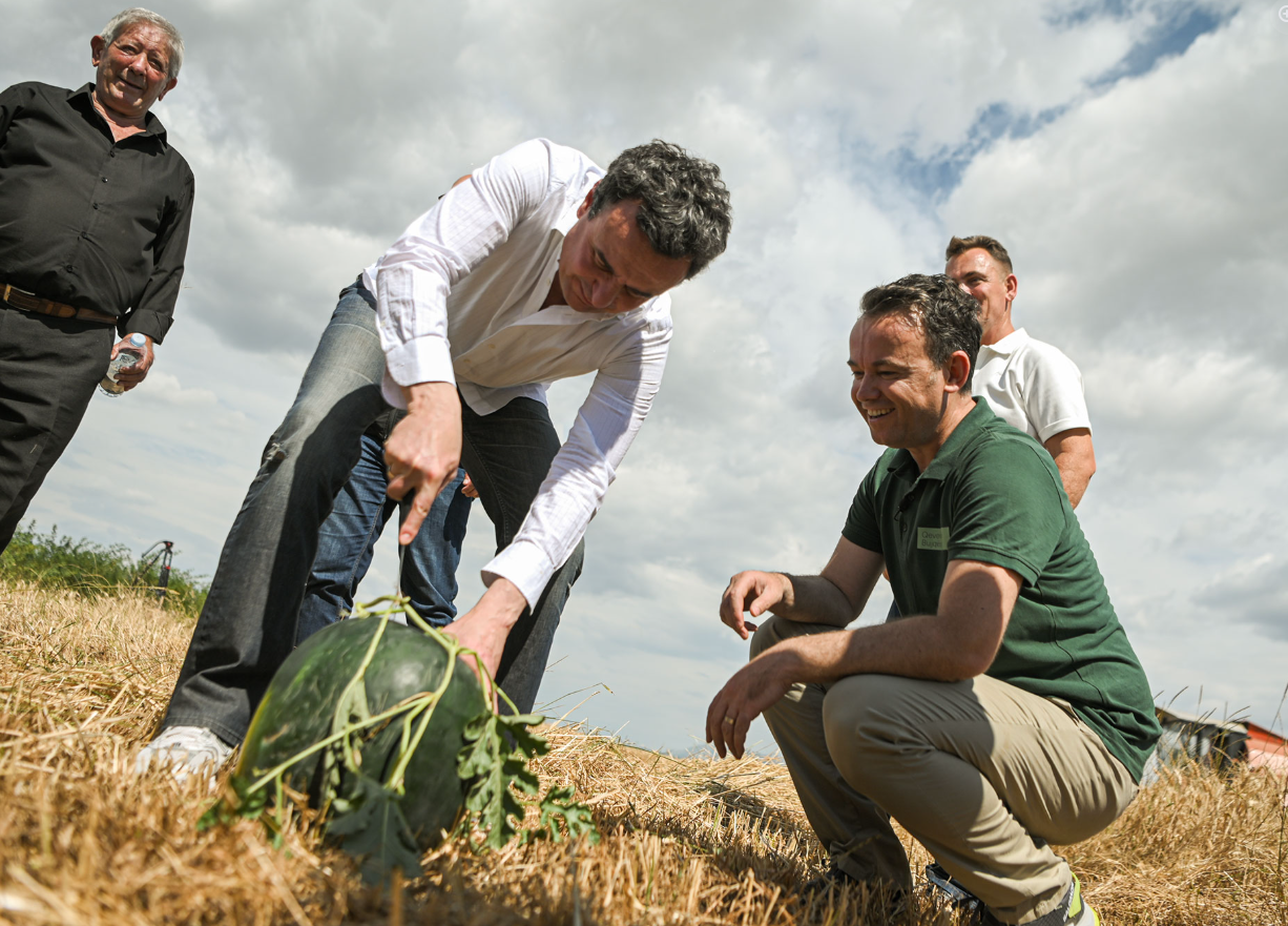Kreu qeveritar bashkë me vartësin e tij janë pritur nga fermeri Xhemë Beqiraj, që sipas Kurtit tokën që për kohë të gjatë ishte djerrinë, Beqiraj, tha ai, e ka kthyer në fushë me grurë.