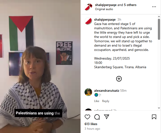 “Gaza ka hyrë në fazën 5 të kequshqyerjes dhe palestinezët po shfrytëzojnë atë pak energji që u ka mbetur për të nxitur botën të ngrihet në këmbë dhe të zgjedhë një anë. Nesër, ne do të ngrihemi së bashku për të kërkuar fundin e okupimit të jashtëligjshëm të Izraelit”, ka thënë Thunberg.
