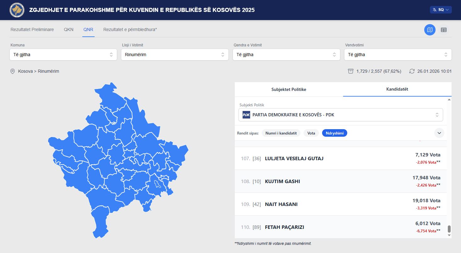 Votat që i janë hequr deri më tash janë gjithsej 6 mijë e 754, ndërsa procesi i rinumërimit ka mbërritur në gati 70% në nivel vendi./Klankosova.tv