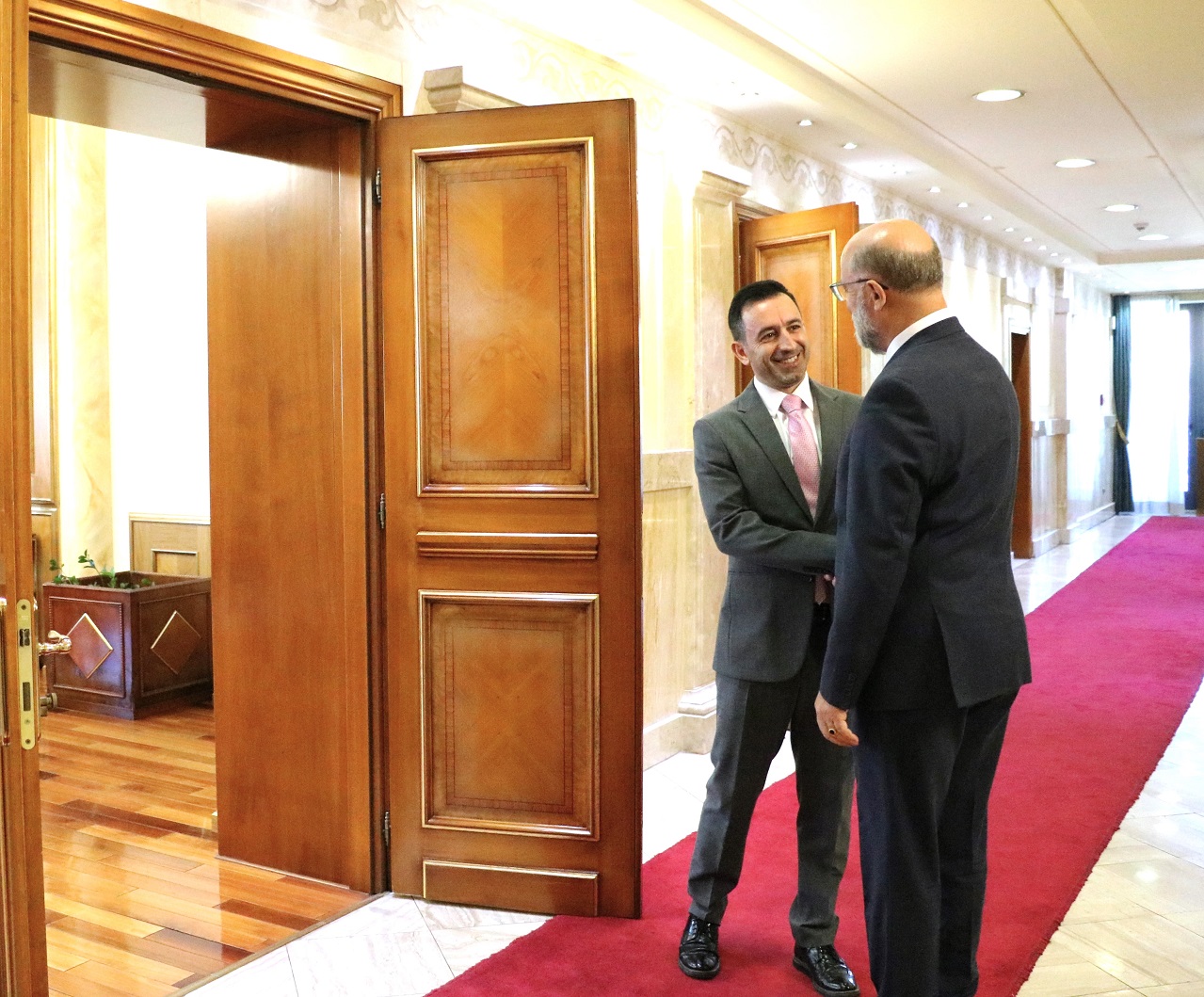Në fillim të takimit, kryeparlamentari Basha i përcolli ambasadorit urimet më të përzemërta për zgjedhjen e Niko Peleshi në postin e Kryetarit të Kuvendit të Shqipërisë, duke e cilësuar këtë si një moment të rëndësishëm për shtetin shqiptar dhe për bashkëpunimin mes dy parlamenteve.