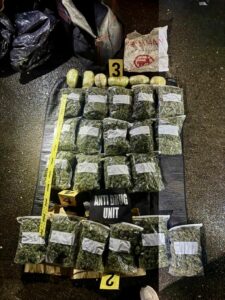 20 paketime me substancë, dyshohet të jetë narkotike e llojit marihuanë, me peshë 6.4 kg;