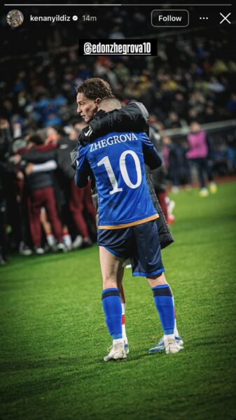 Ai në profilin e tij zyrtar në Instagram, postoi një fotografi me Zhegrovën, në momentin kur po e ngushëllonte pas përfundimit të ndeshjes.
