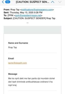 Në fotografinë e mëposhtme mund të shihni mesazhin e dërguar në drejtim të adreses elektronike të presidencës.
