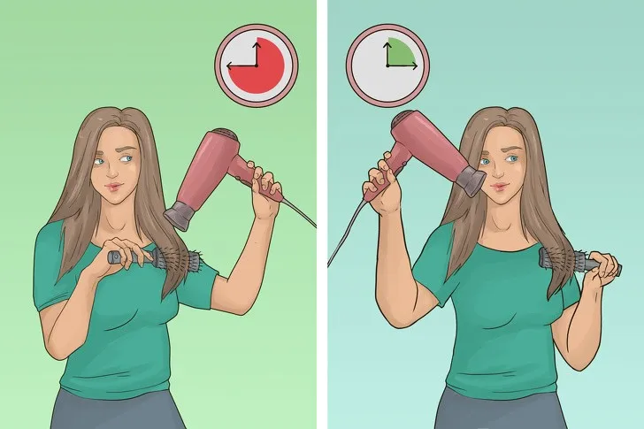 Mbajtja e tharëses me dorën tuaj dominuese duket të jetë mjaft e natyrshme – kjo është ajo që shumë njerëz bëjnë. Por është e gabuar, sepse keni nevojë për forcën dhe shkathtësinë e kësaj dore për modelin e flokëve. Kalojeni tharësen në dorën e majtë, pasi kjo do t’ju ndihmojë të kontrolloni më mirë procesin, të punoni me krehër në mënyrë më efikase dhe të shpenzoni më pak energji në përgjithësi.