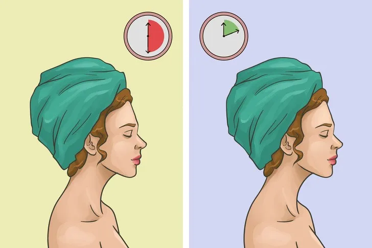 Mos i thani flokët me një peshqir për më shumë se 30 minuta, veçanërisht nëse është prej pambuku. Grimcat e kësaj pëlhure krijojnë efektin e fërkimit dhe i bëjnë flokët më të ndjeshme gjatë tharjes së mëvonshme. Zgjidhni një peshqir më të butë të bërë nga mikrofibra dhe mbani flokët tuaj të mbështjellur jo më shumë se 10 minuta.