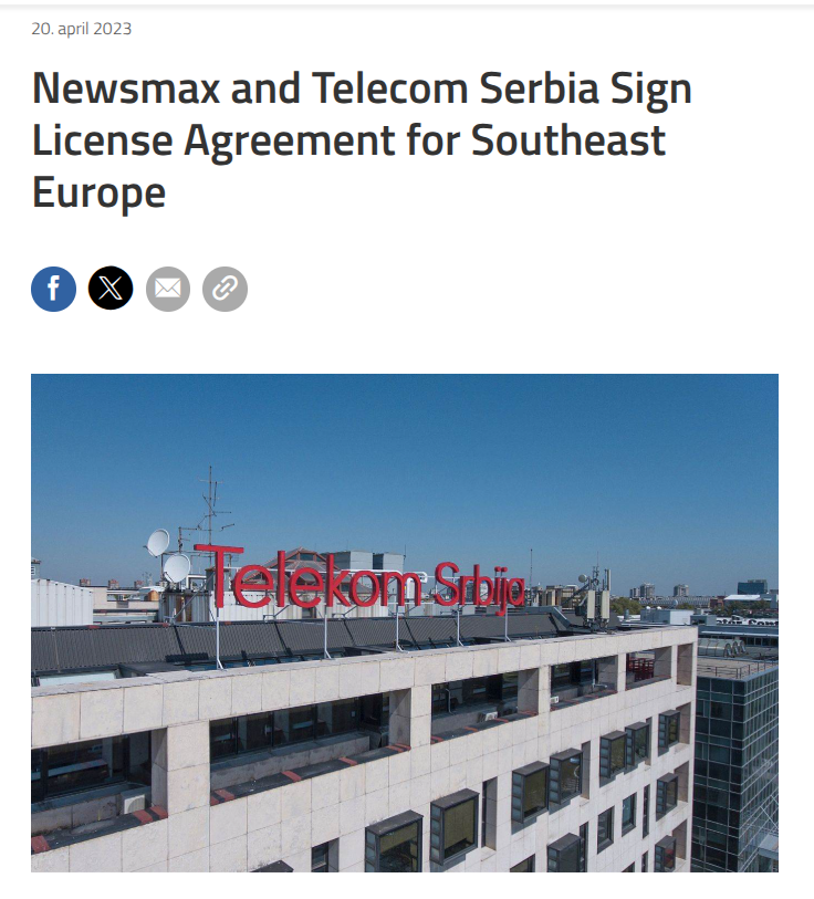 Telekom Srbija” me një marrëveshjeje franshize, po e zgjeron markën “Newsmax Balkans” në Evropën Lindore, duke filluar me vende si: Sllovakia, Hungaria, Rumania, Greqia dhe Shqipëria.