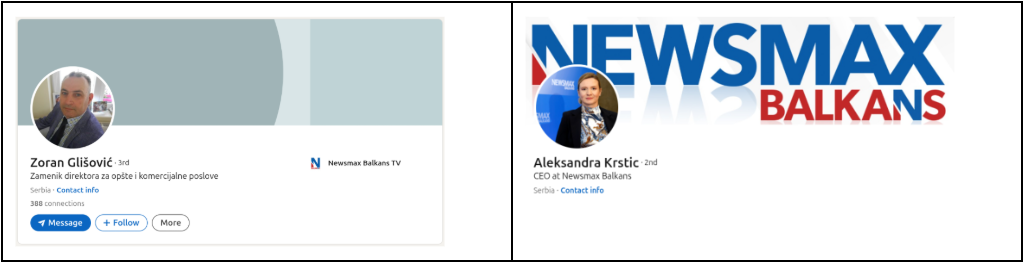 Kompania “Arena News Channel Two DOO Beograd” është entiteti prapa një kanali televiziv serb – NewsMax Balkans. Në impresumin e publikuar në web-faqen e tyre, NewsMax Balkans shkruan: “Redaksia e televizionit ‘Newsmax Balkans’ është themeluar në mars të 2024, si partneri i parë medial i televizionit amerikan Newsmax”.