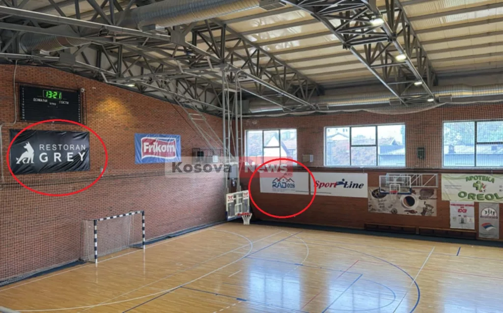 Në fotografi shihen logot e kompanisë serbe “RAD” e lidhur me Milan Radojçiqin si dhe emri i restorantit “Grey” i cili ishte në pronësi të terroristit Milan Radojçiq.