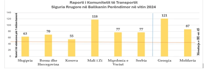 Po ashtu, sipas raportit të Transport Community, i publikuar me 12 nëntor 2025, me të dhënat e vitit 2024, thuhet se Kosova ka arritur rezultate pozitive edhe në sigurinë rrugore, duke pasur numrin më të ulët të viktimave për një milion banor në aksidente fatale, krahasuar me vendet e Ballkanit Perëndimor.
