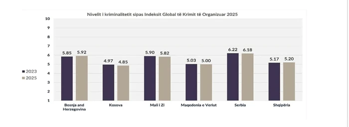 Sipas rezultateve të këtij indeksi për vitin 2025, i cili mat 15 tregje kriminale, 5 lloje akterësh kriminalë dhe 12 blloqe të qëndrueshmërisë, të publikuar nga Global Initiative Against Transnational Organized Crime, Kosova vlerësohet me nivelin më të ulët të kriminalitetit në Ballkanin Perëndimor, me një mesatare prej 4.85 pikësh në një shkallë vlerësimi nga 1 deri në 10.