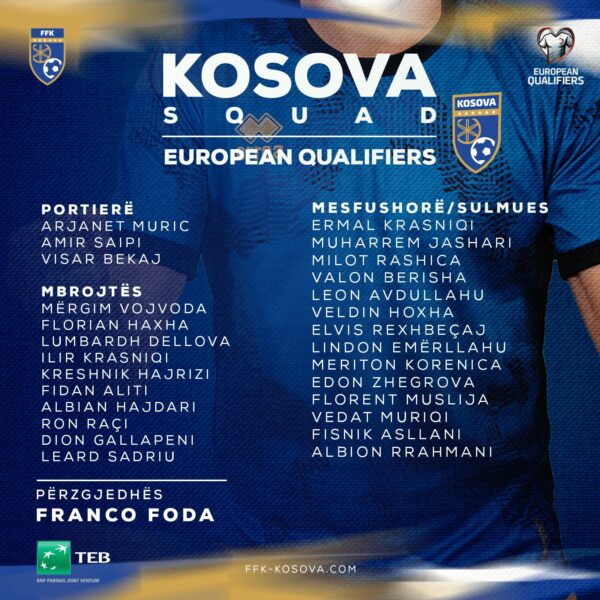 Kombëtarja e Kosovës e ka publikuar listën e futbollistëve të ftuar për dy ndeshjet e muajit tetor, në kuadër të kualifikimeve për Kampionatin Botëror.
