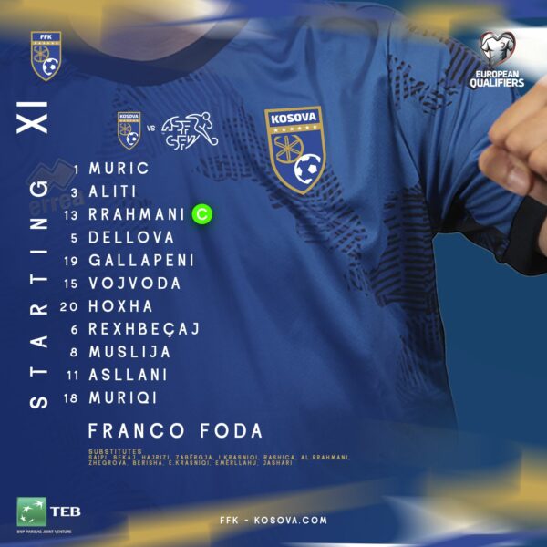 Është publikuar formacioni zyrtar, me të cilin do të paraqitet në fushën e blertë sonte Kosova ndaj Zvicrës.