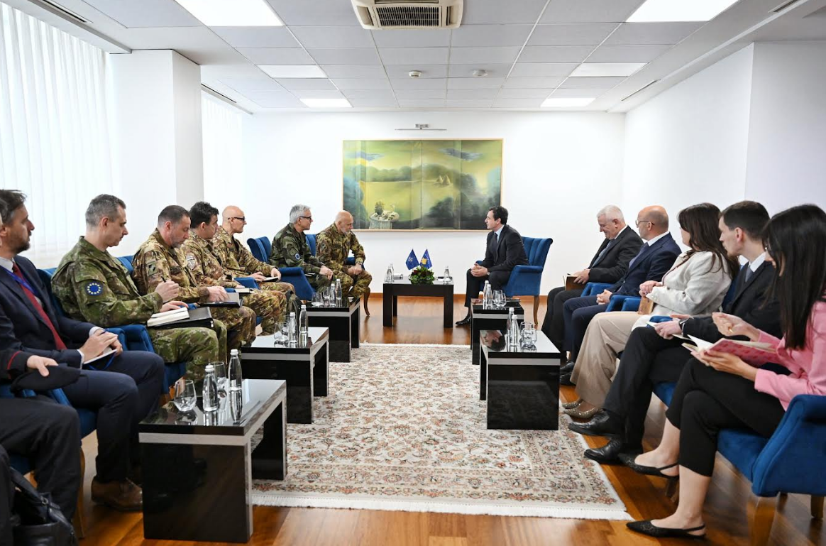 Kryeministri Albin Kurti, ka pritur në takim delegacionin e prirë nga kreu i Komitetit Ushtarak të NATO-s, Admirali Giuseppe Cavo Dragone, dhe kreu i Komitetit Ushtarak të Bashkimit Evropian, Gjenerali Sean Clancy.
