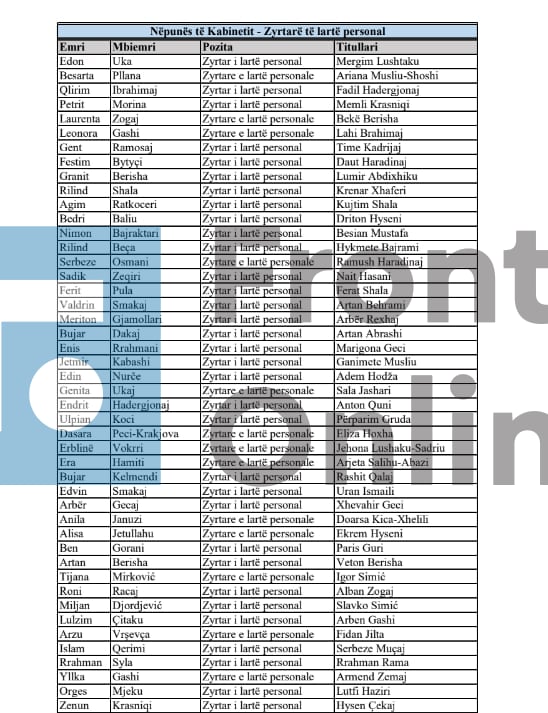 FrontOnline ka siguruar nga Kuvendi i Kosovës listën e emrave të asistentëve të rinj të deputetëve.