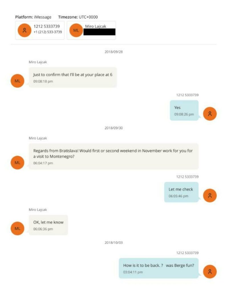 Në një nga mesazhet, Lajçak e pyet Epsteinin nëse do t’i përshtatej fundjava e parë apo e dytë e nëntorit për një vizitë në Mal të Zi.
