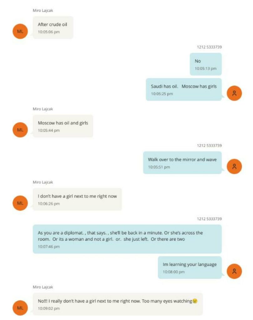 Në një tjetër mesazh, Epstein i thotë Lajçakut se do të donte ta vizitonte me të ministrin e Jashtëm të Rusisë, Sergey Lavrov, ndërsa Lajçak i përgjigjet se e pëlqen Lavrovin.
