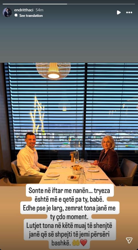 “Tryeza është më e qetë pa ty. Lutjet tona në këtë muaj të Shenjtë janë që të jemi përsëri bashkë”, ka shkruar Endriti.