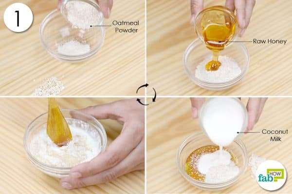 Vendosni në një enë fillimisht pluhurin e tërshërës. Shtoni mjaltin dhe në fund qumështin e kokosit.