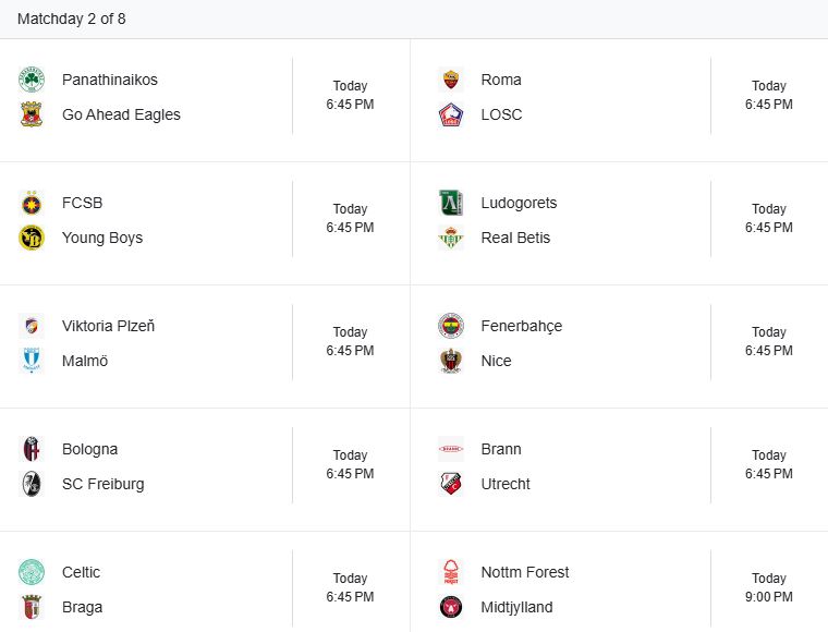 Vëmendja kryesore do të jetë në lojën AS Roma – Lille, që nis nga ora 18:45, transmeton Klankosova.tv.