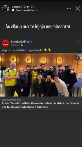 Futbollisti kosovar, Arbër Zeneli ishte mjaft i kritikuar nga tifozët kosovar, pasi bëri postime me fanellën e Suedisë, në përkrahje të vëllait të tij, Besfortit i cili luante ndaj Polonisë.