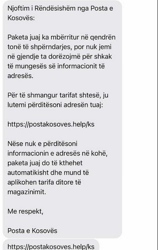 “Në asnjë rrethanë, Posta e Kosovës nuk kërkon të dhëna personale apo informacione bankare përmes SMS-ve apo kanaleve jozyrtare. Raste të ngjashme janë evidentuar edhe në administrata postare të vendeve të tjera të rajonit”, thotë Posta e Kosovës.