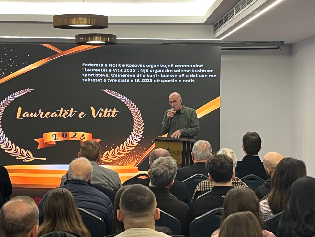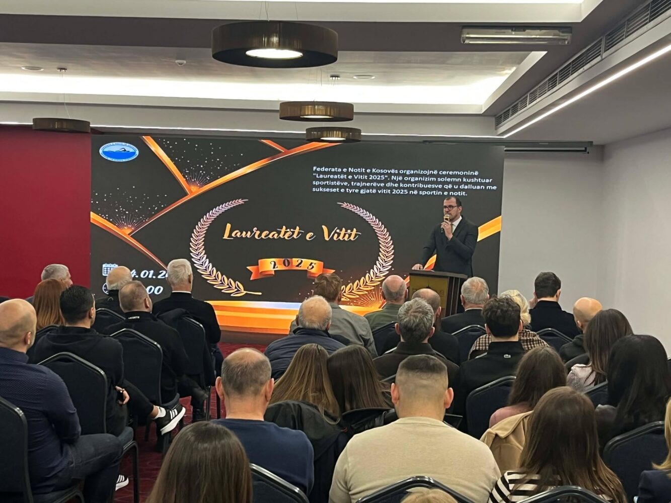 Federata e Notit e Kosovës ka paraqitur rezultatet e saj përmes një video që shfaq në ekran, teksa ishte organizuar ceremonia “Laureatët e Vitit 2025”, ngjarje kjo e dedikuar shpërblimit dhe vlerësimit të sportistëve, trajnerëve dhe kontribuuesve më të dalluar në sportin e notit gjatë vitit 2025-të, raporton Ekonomia Online.