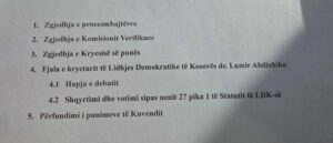 Në rend të ditës janë pesë pika, përfshirë pikën kryesore të votëbesimit për Abdixhikun sipas Nenit 27 të Statutit të LDK-së.