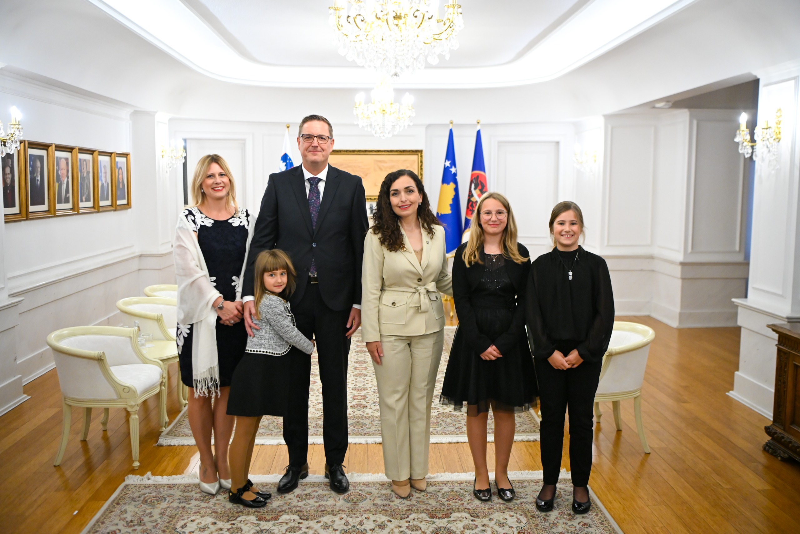 Presidentja e Republikës së Kosovës, Vjosa Osmani, pranoi sot letrat kredenciale nga ambasadori i ri i Republikës së Sllovenisë në Kosovë, Borut Blaj.