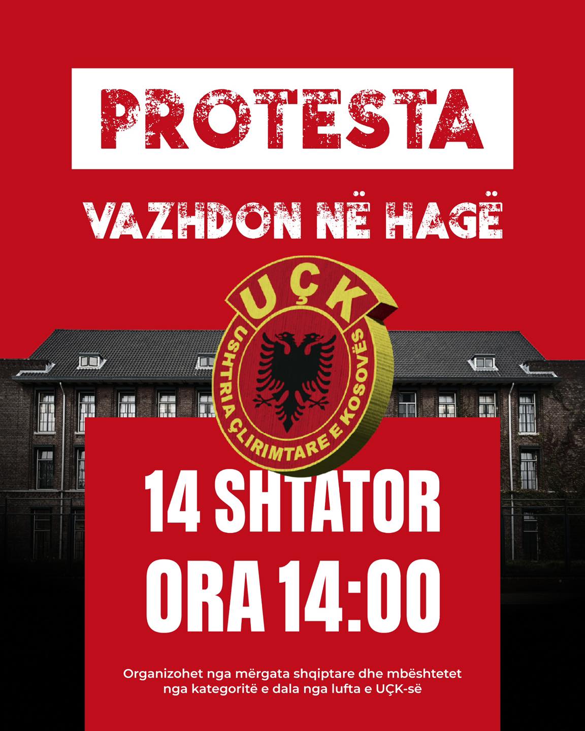 Protesta do të mbahet më 14 shtator 2025, duke filluar nga ora 14:00, përpara ndërtesës së Dhomave të Specializuara në Hagë, rasporton RTKlive.
