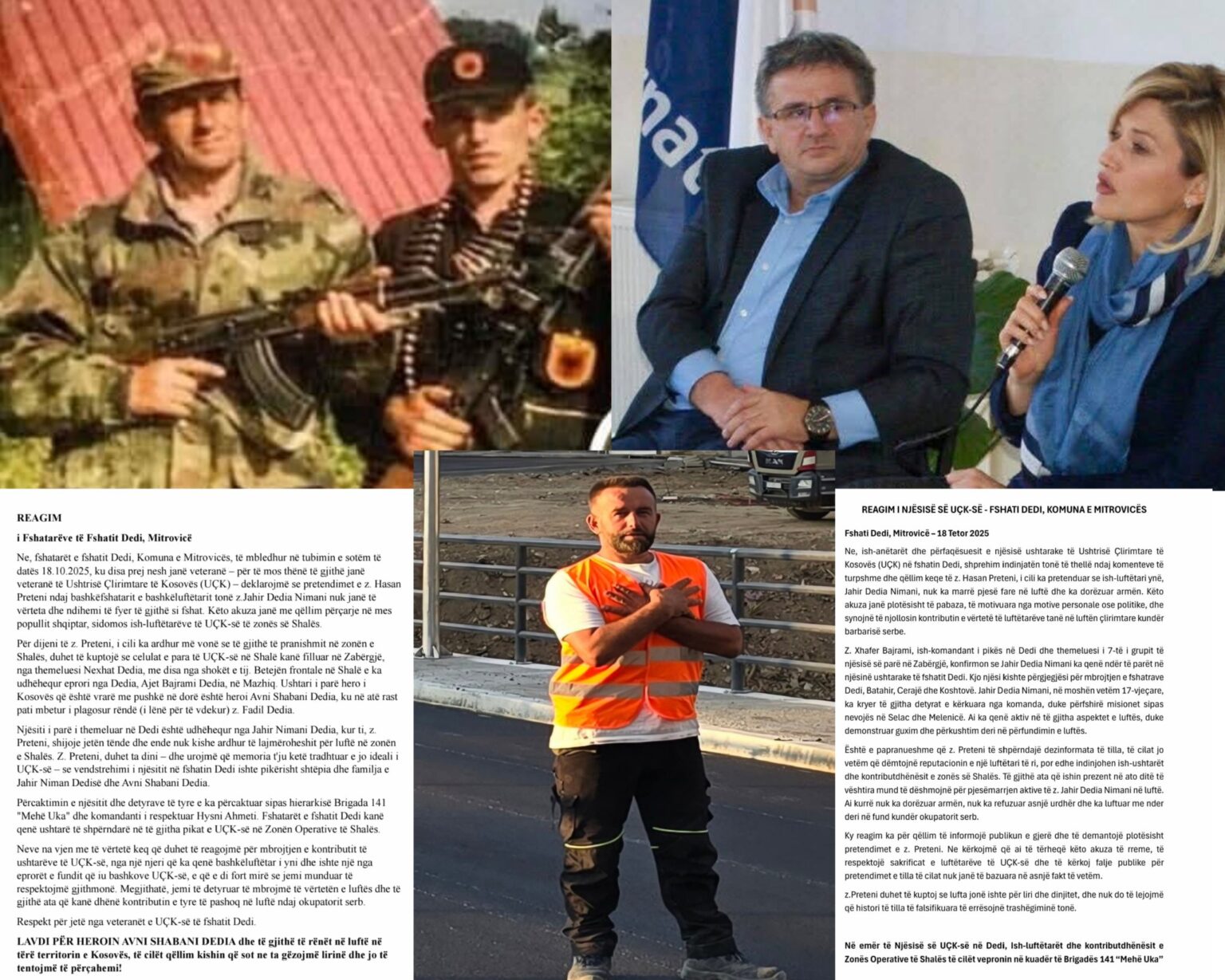 Luftëtarët e fshatit Dedi, pjesë e Brigadës 141 “Mehë Uka”, sipas reagimit, kanë dhënë kontribut të madh në mbrojtjen e zonës së Shalës dhe të Kosovës. Përpjekjet për të njollosur sakrificën e tyre janë të papranueshme dhe dëmtojnë kujtimin e atyre që ranë për liri. Banorët dhe ish-luftëtarët e UÇK-së kërkuan që Hasan Preteni të tërheqë publikisht deklaratat e tij dhe të ndalojë përhapjen e shpifjeve që cenojnë dinjitetin e luftëtarëve.