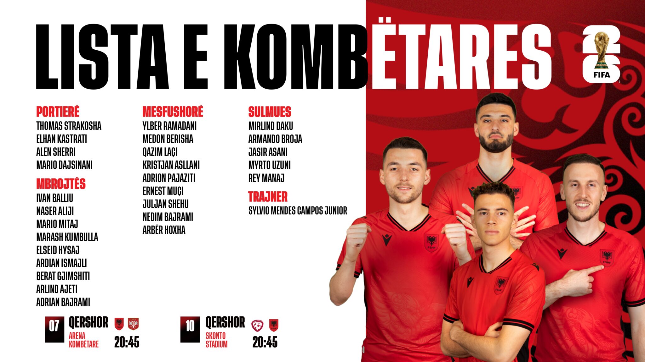 Trajneri Sylvinho ka bërë publike listën me 27 lojtarët e ftuar për këto dy përballje të rëndësishme.