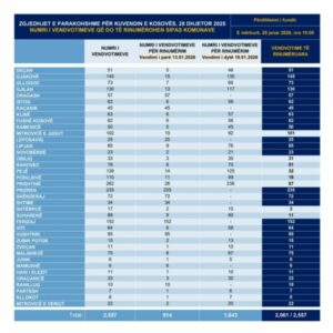 “Nga fillimi i këtij procesi (e martë, 13 janar 2026, ora 18:00) dhe deri më tani (e mërkurë, 28 janar 2026, ora 10:00) janë rinumëruar mbi 80% apo 2,061 nga 2,557 vendvotime. Pra, numri i përgjithshëm i komunave që deri më tani kanë përmbyllur rinumërimin janë 30, ndërkaq kanë mbetur për t’u rinumëruar më pak se 500 vendvotime që i takojnë 8 komuave tjera”, ka njoftuar Zëdhënësi i KQZ-së, Valmir Elezi.