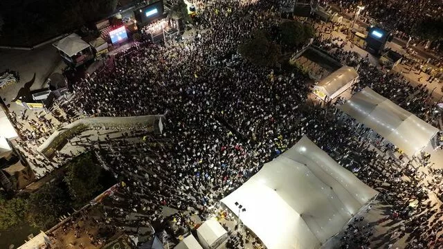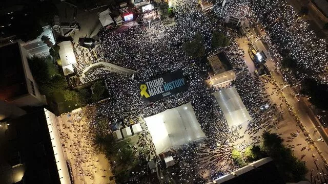 Mbrëmë, në sheshin para Muzeut të Izraelit në Tel Aviv, të cilin e quajnë “Sheshi i Pengjeve”, mijëra protestues ngritën pankarta drejtuar Presidentit amerikan Donald Trump, duke i kërkuar që të ndërhyjë për një marrëveshje armëpushimi dhe lirimin e pengjeve në Gaza.