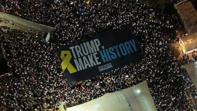 Një nga pankartat kryesore mbante mbishkrimin: “Trump, shkruaj histori!”