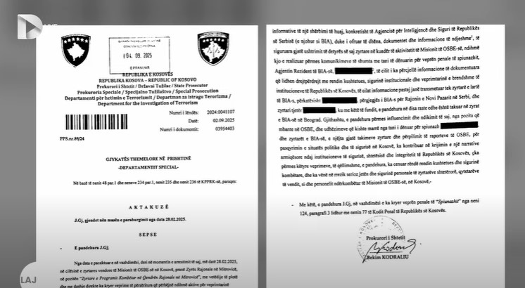 Në këtë aktakuzë të cilën e posedon televizioni, thuhet se e njëjta kishte shpërndarë dokumente tepër të ndjeshme të punës së OSBE-së.