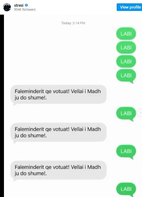 Përmes një postimi në Instagram, ai ka publikuar dëshmi të votave, duke treguar se ka dërguar 15 mijë vota për Labinotin.