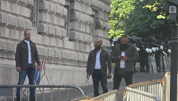 Në mesin e “rojtarëve” të pushtetit është edhe Vladimir Mandiq, ish-hendbollist dhe anëtar i SNS-it, i cili është parë duke shtyrë e goditur studentë në protesta më 1 maj 2025. Ai ka qenë më parë i akuzuar për tentativë vrasjeje, i hetuar për pastrim parash dhe i lidhur me manipulime zgjedhore.